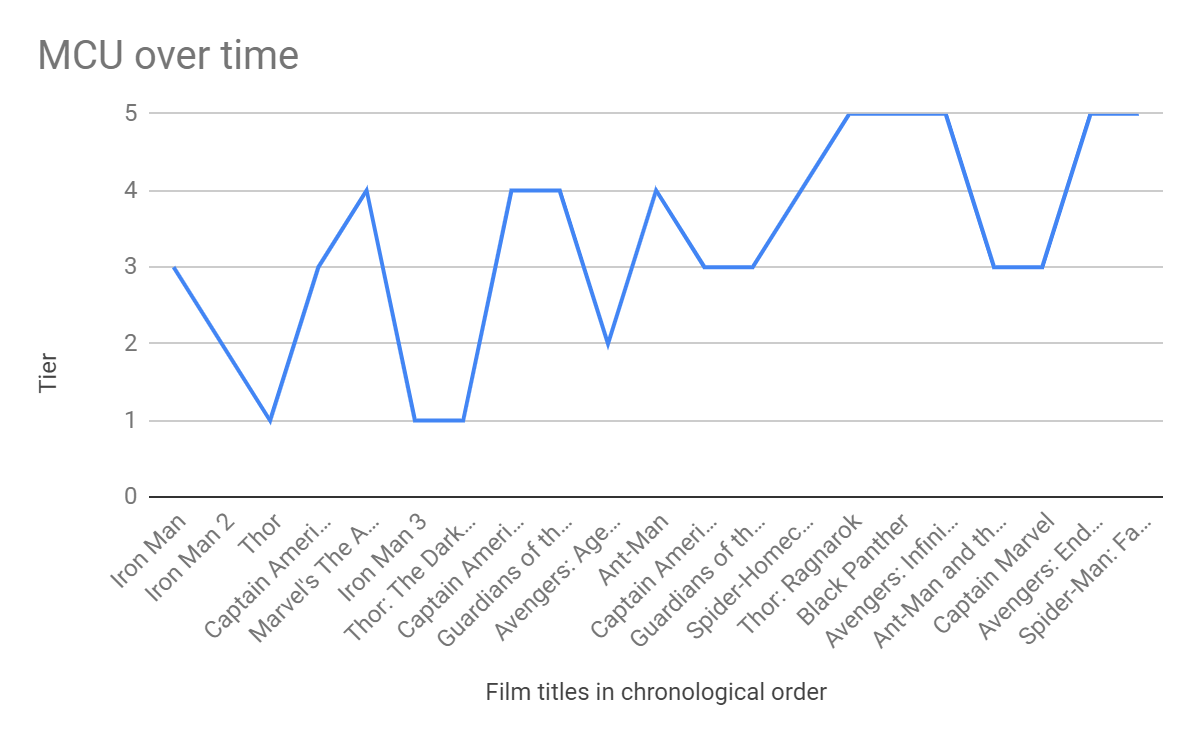 So that’s my list of reviews. I think the full series is pretty solid and you can see from the graph that the standard of films improves over time. That’s the big development of this series. The first films are good films in the superhero genre, but by the end, the output from Marvel is at a whole new level. The best indicator for this to me, is probably comparing Iron Man and Captain Marvel. The public feeling on both films is drastically different but in the rewatch, they’re at a similar level in my opinion. The big difference is what we had come to expect from the series.